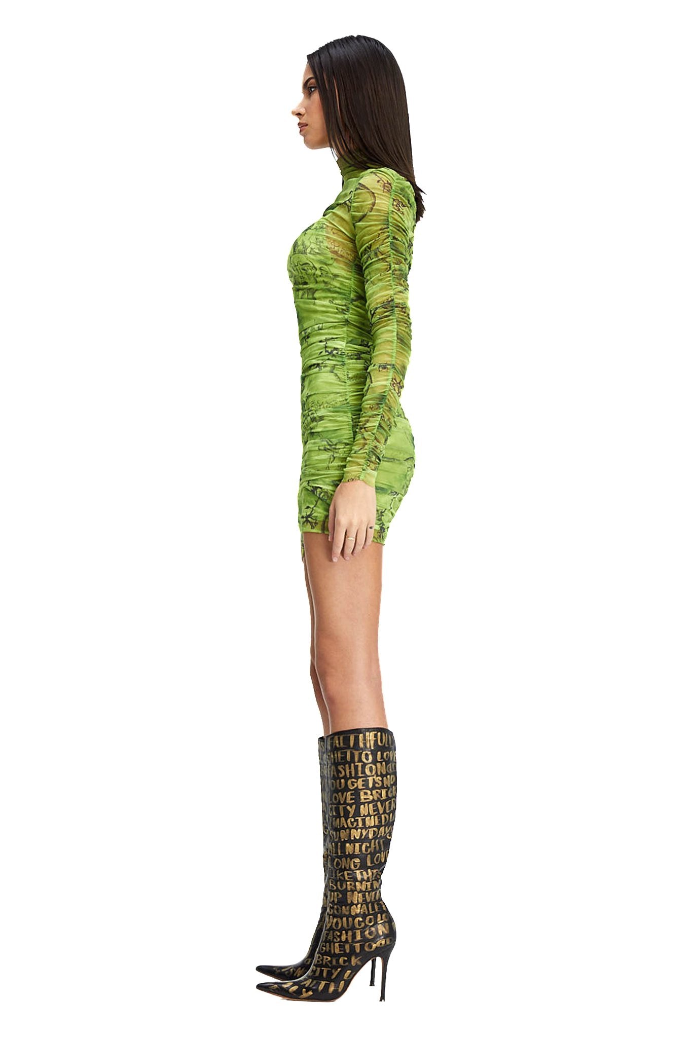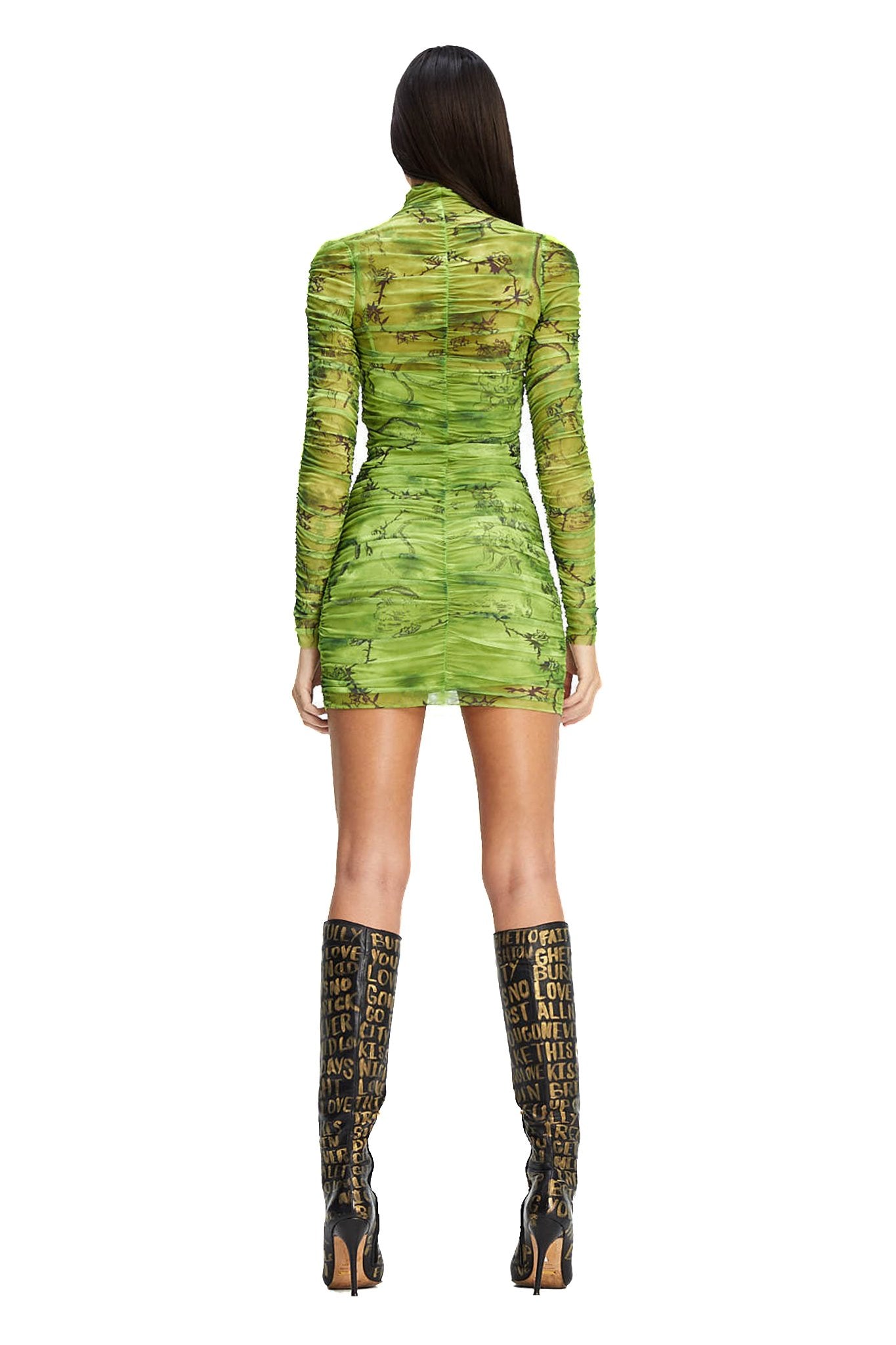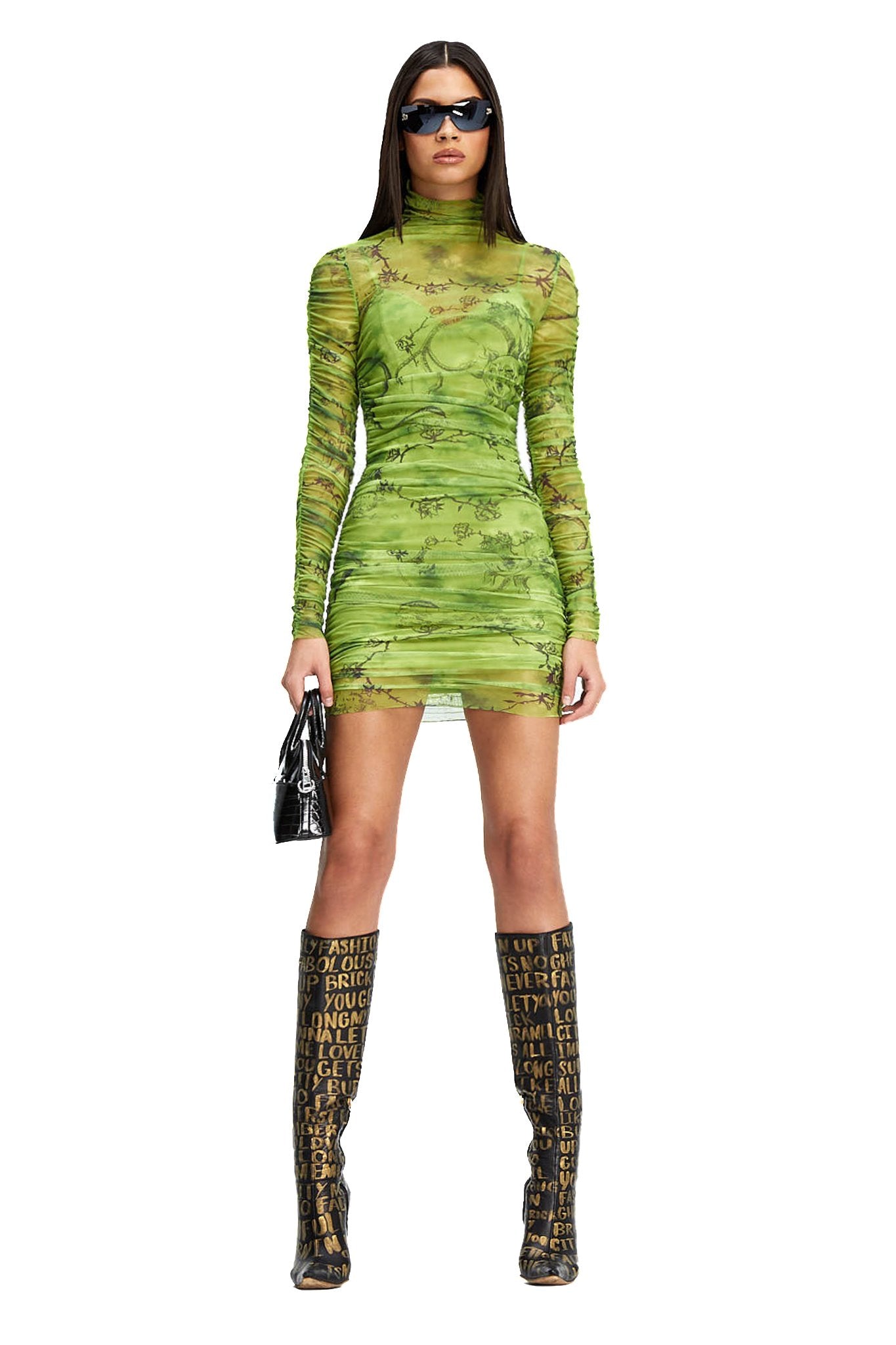 Green and black mesh mini dress