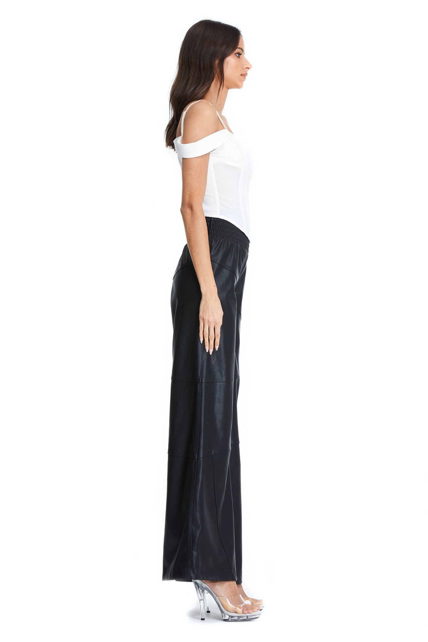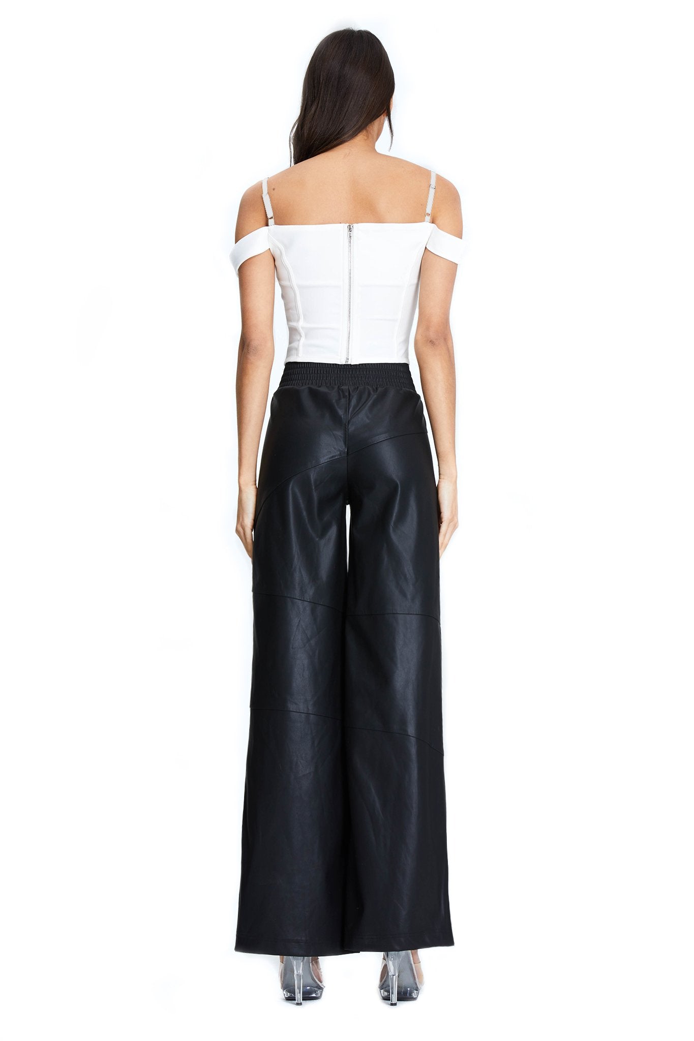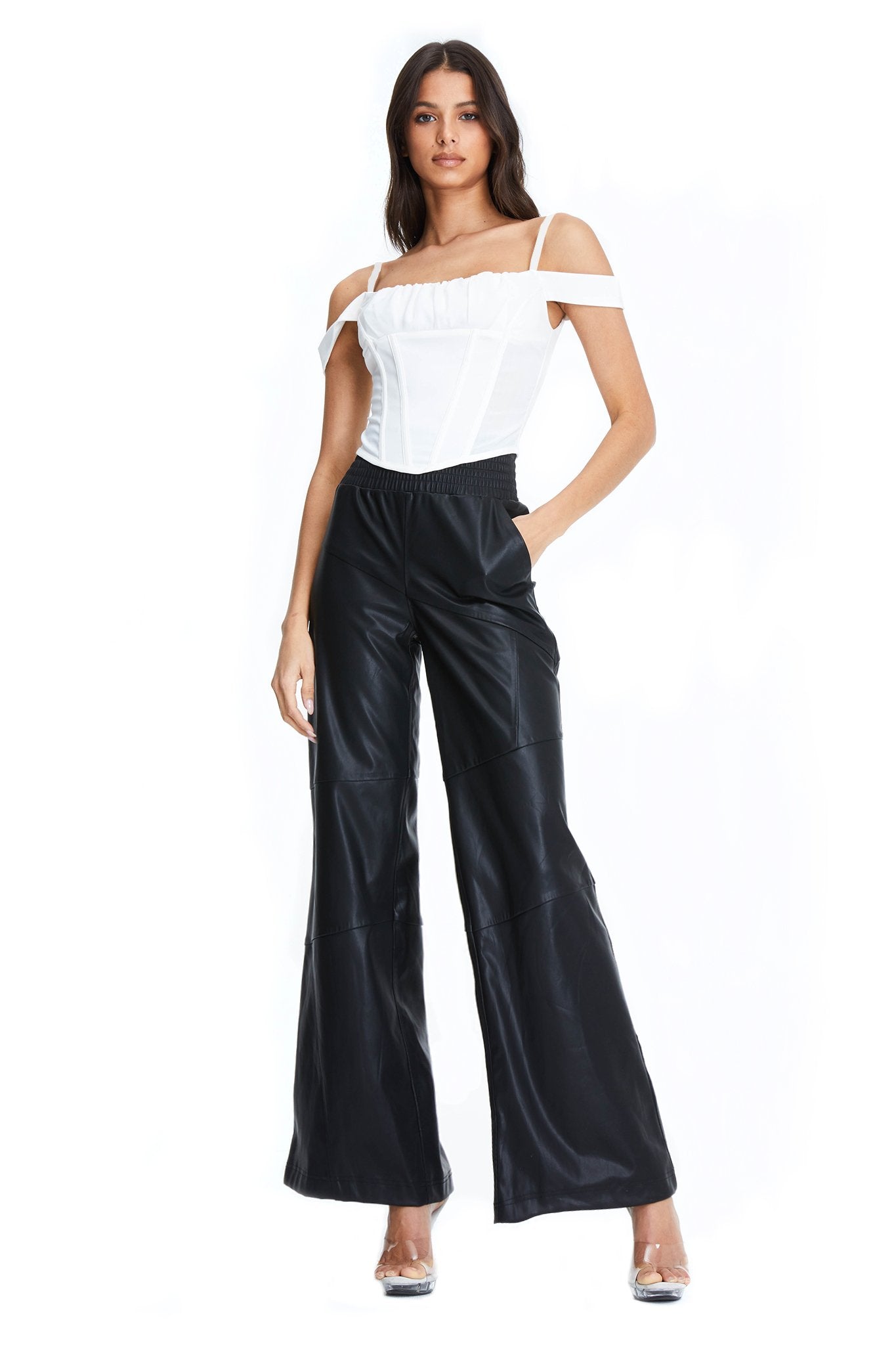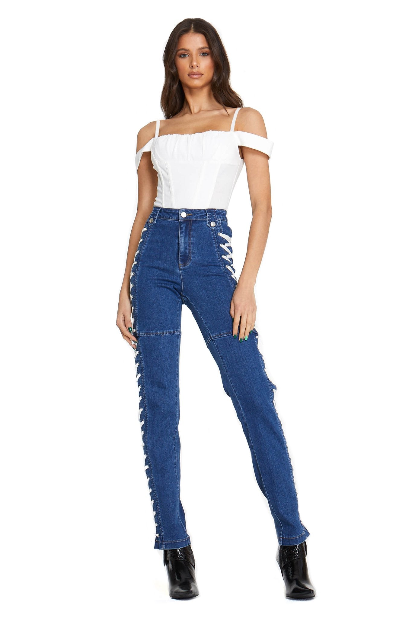 White corset top with off-shoulder sleeve