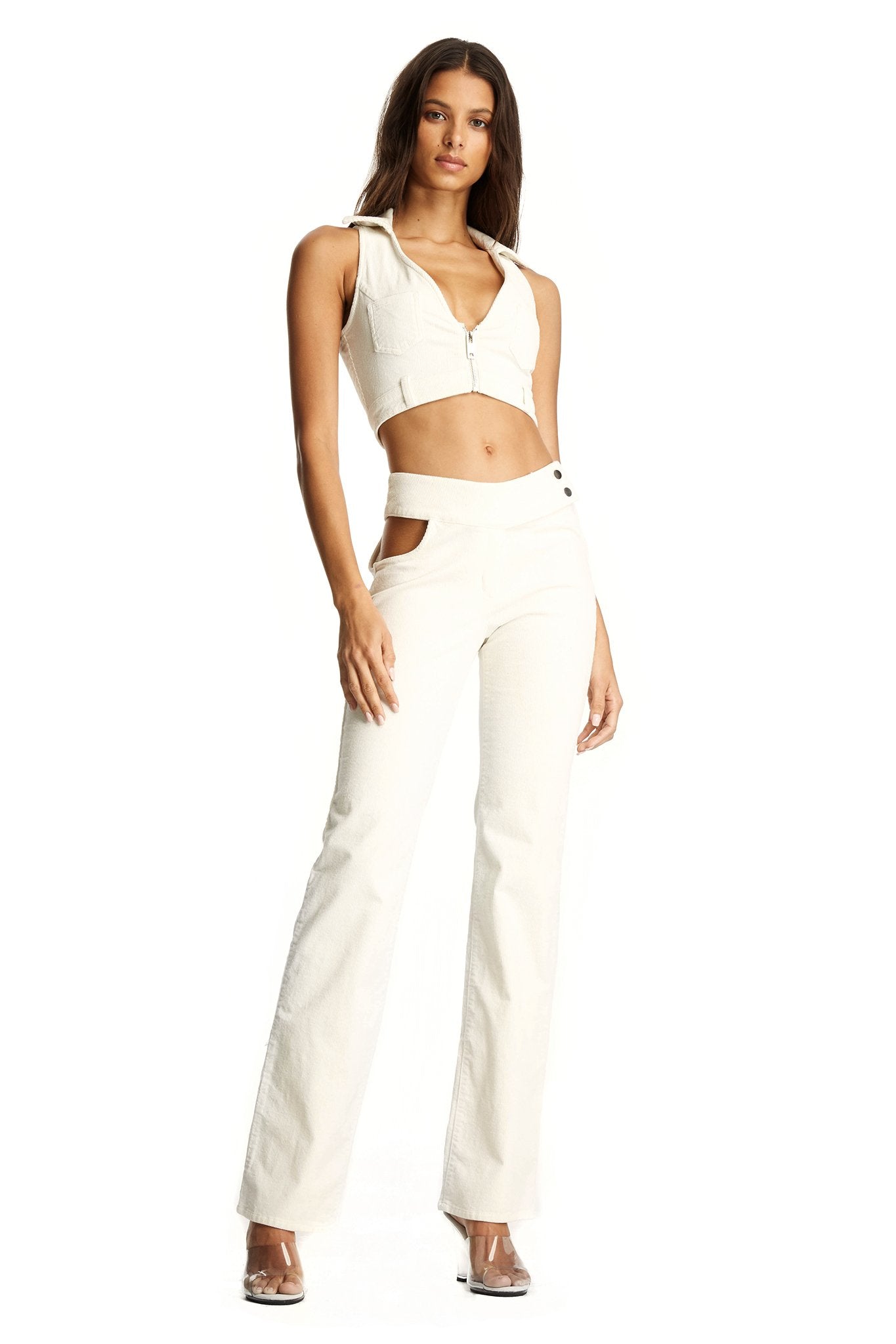 • White cord sleeveless crop top