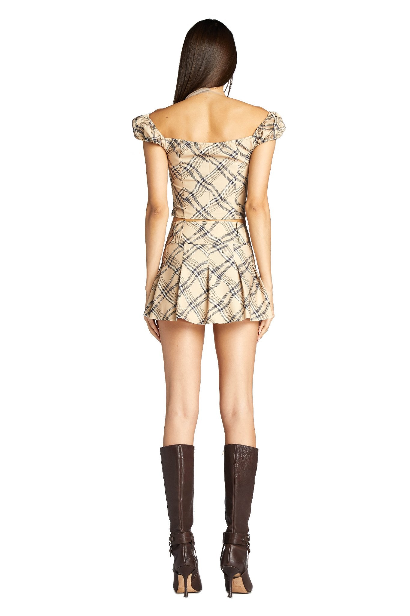 Neutral check puff sleep top