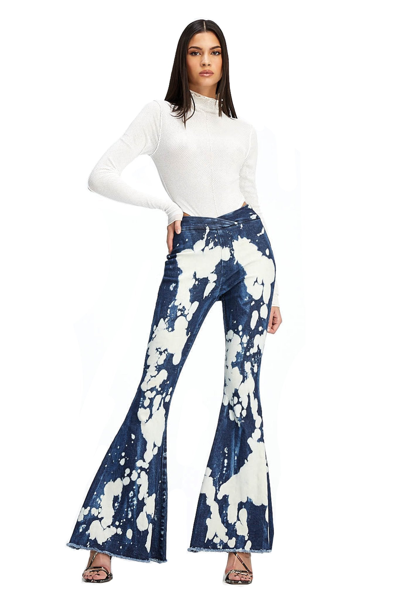 Denim bleach wash flare jean