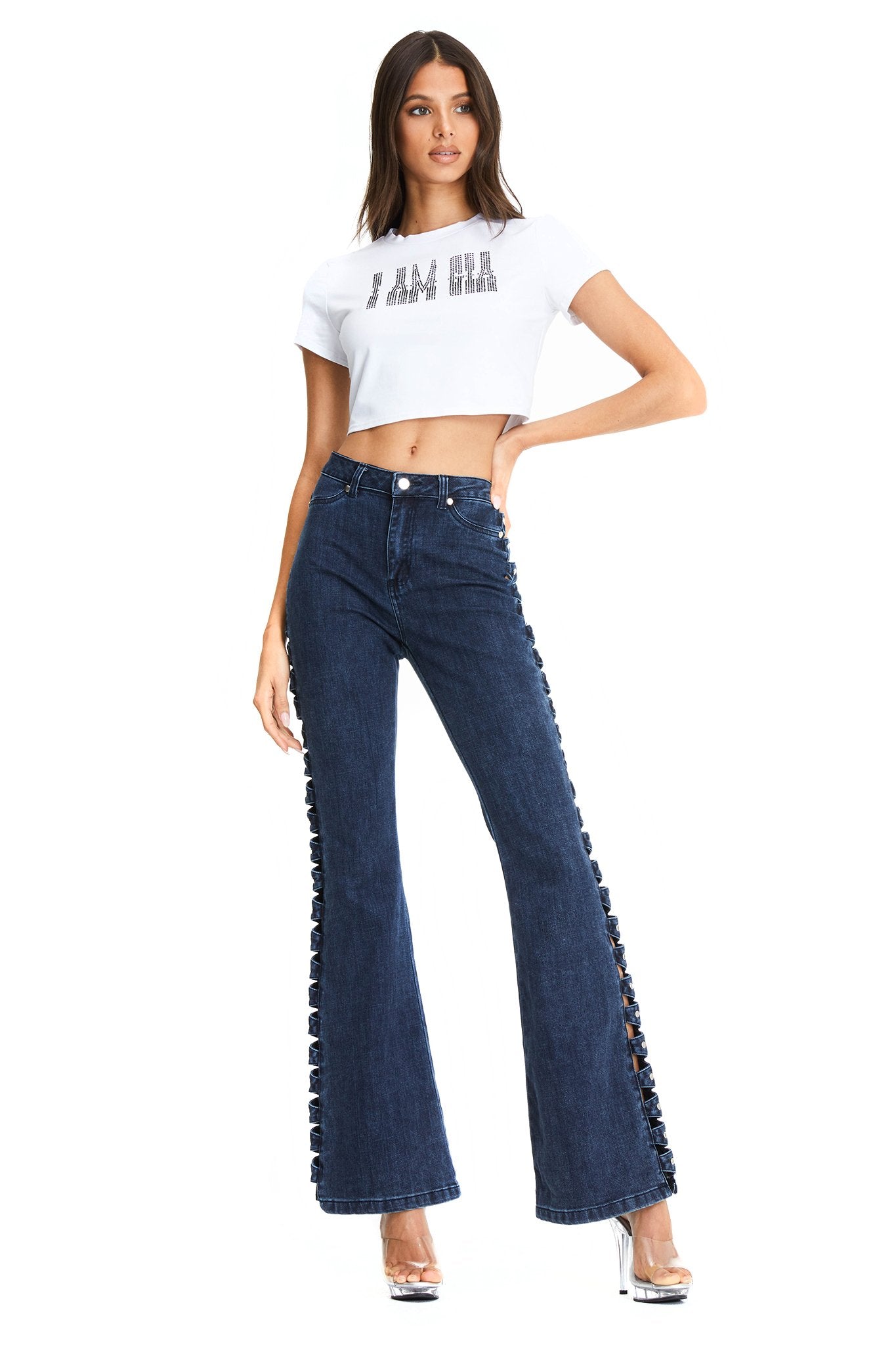 Fitted style with wide leg flare