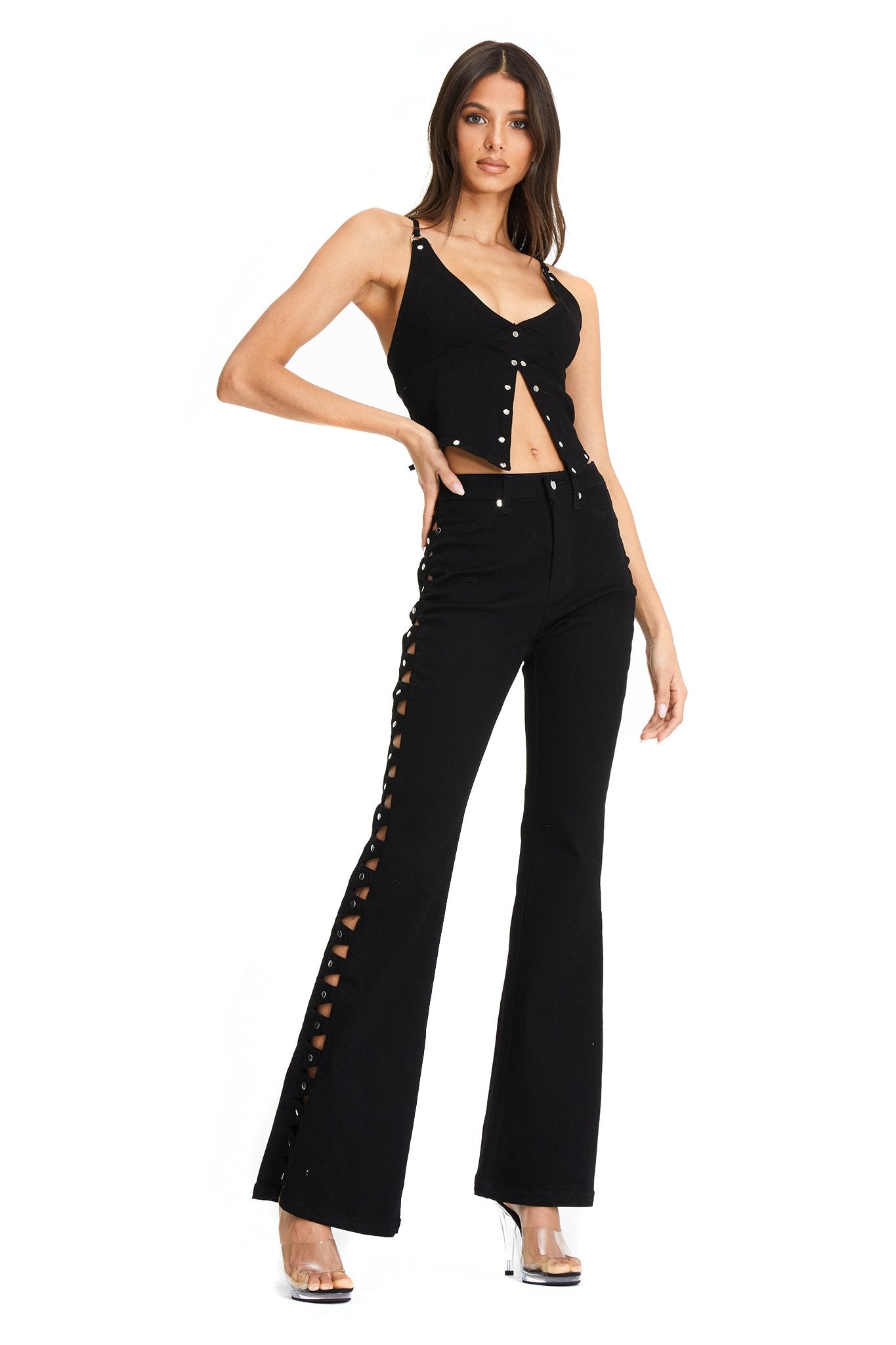 Fitted style with wide leg flare