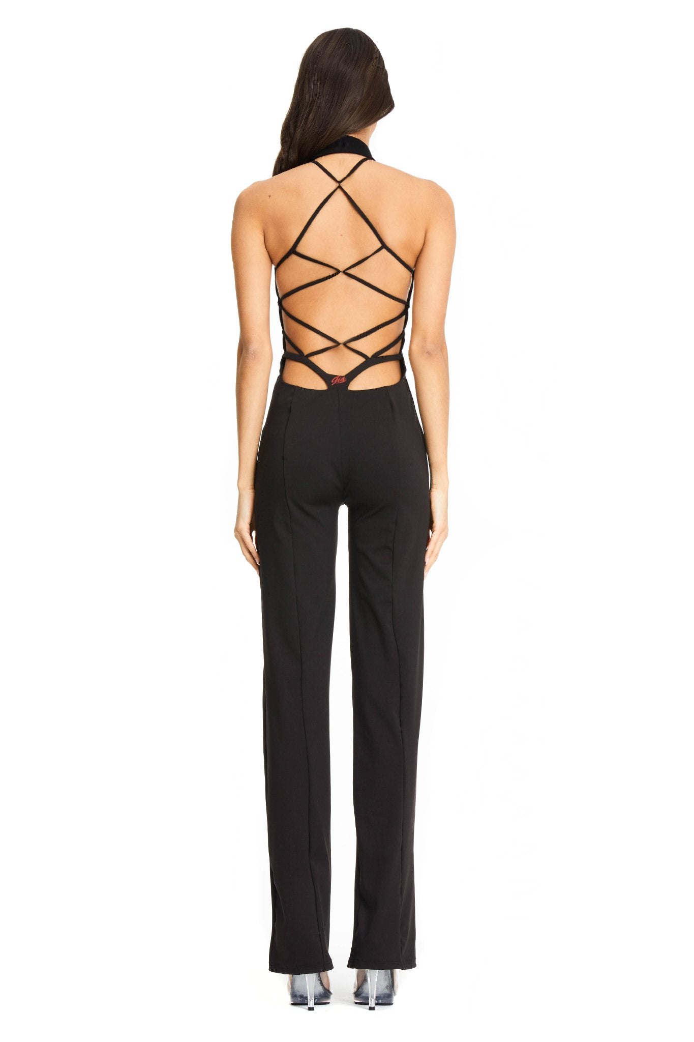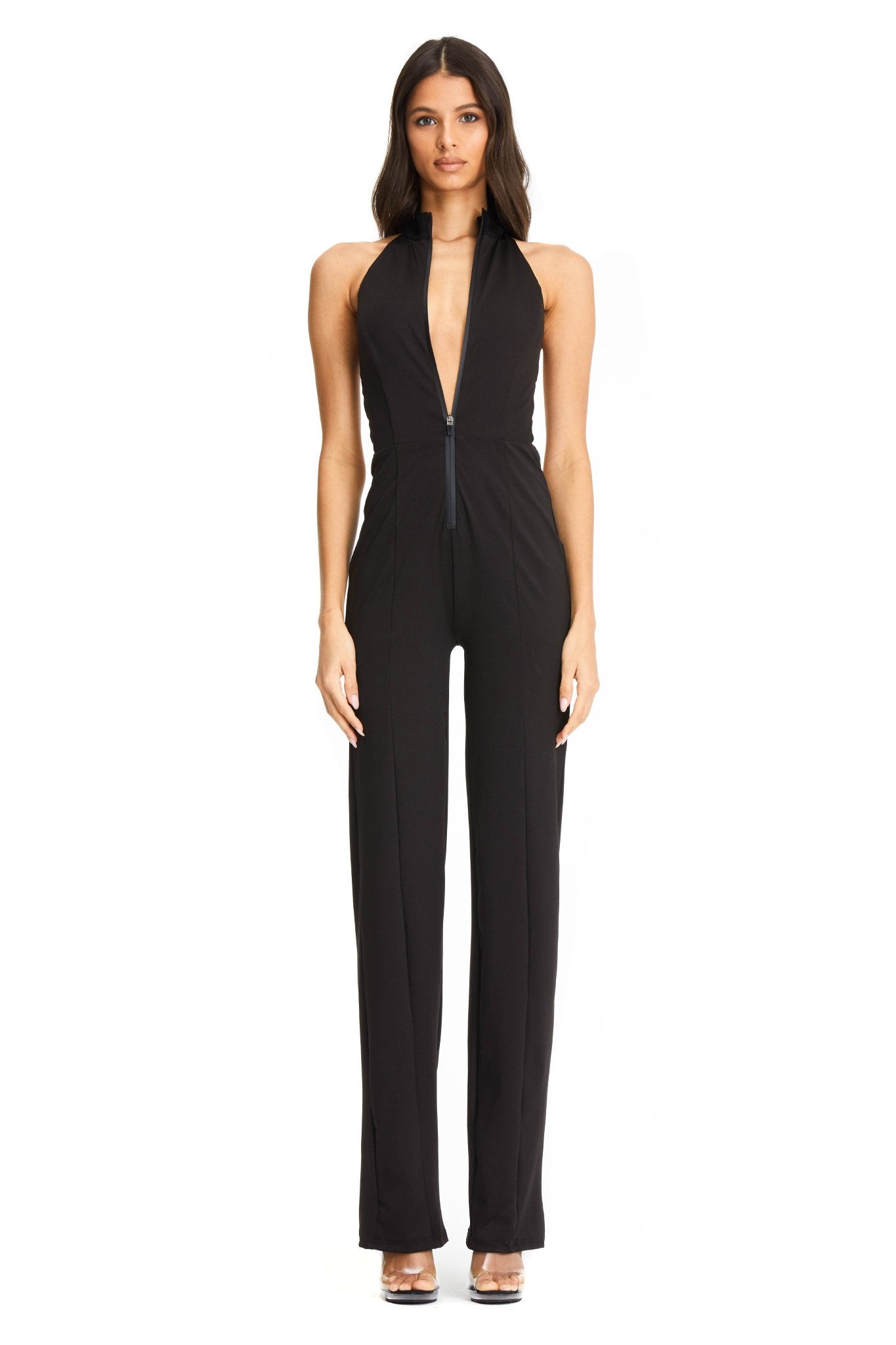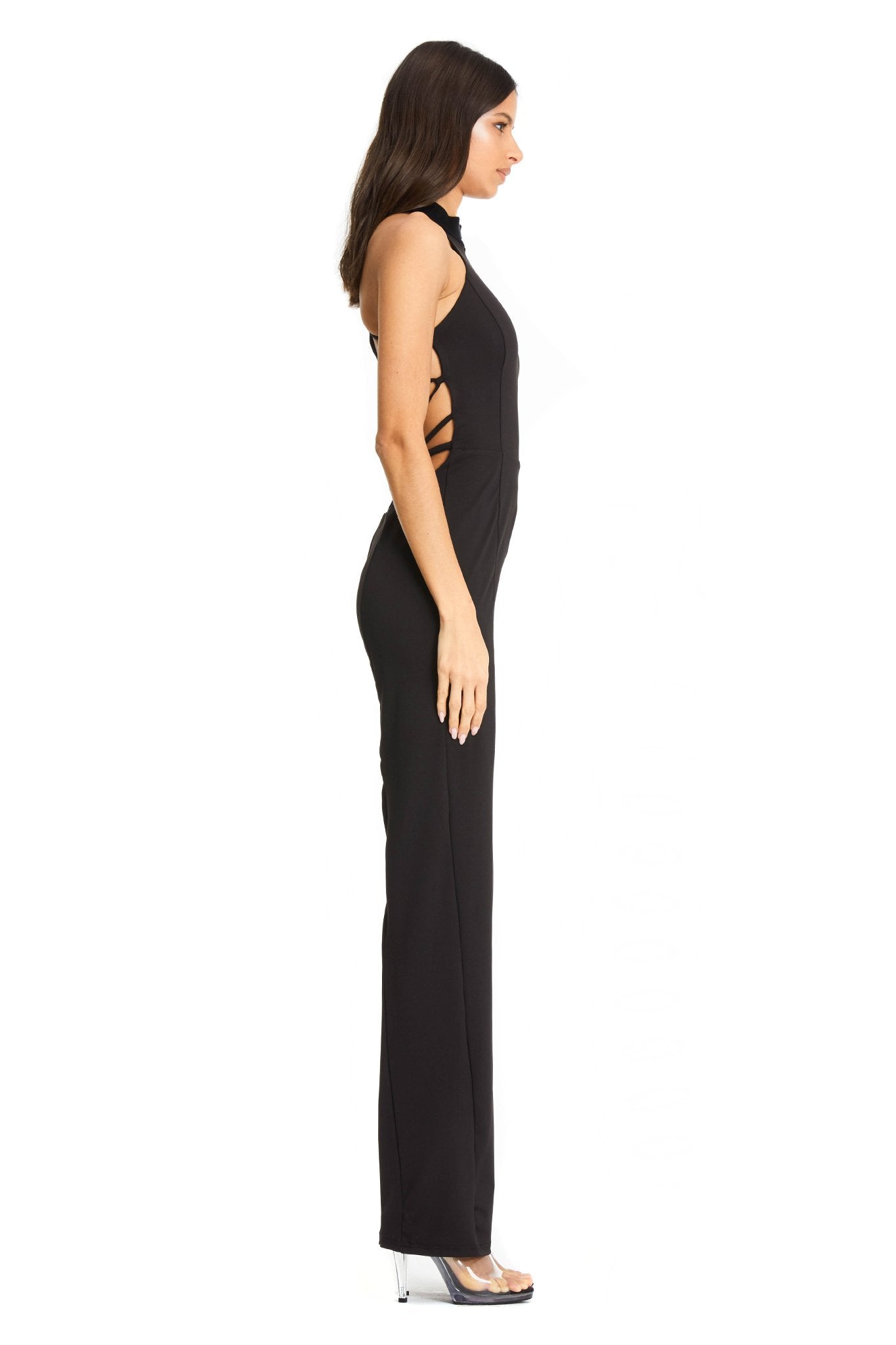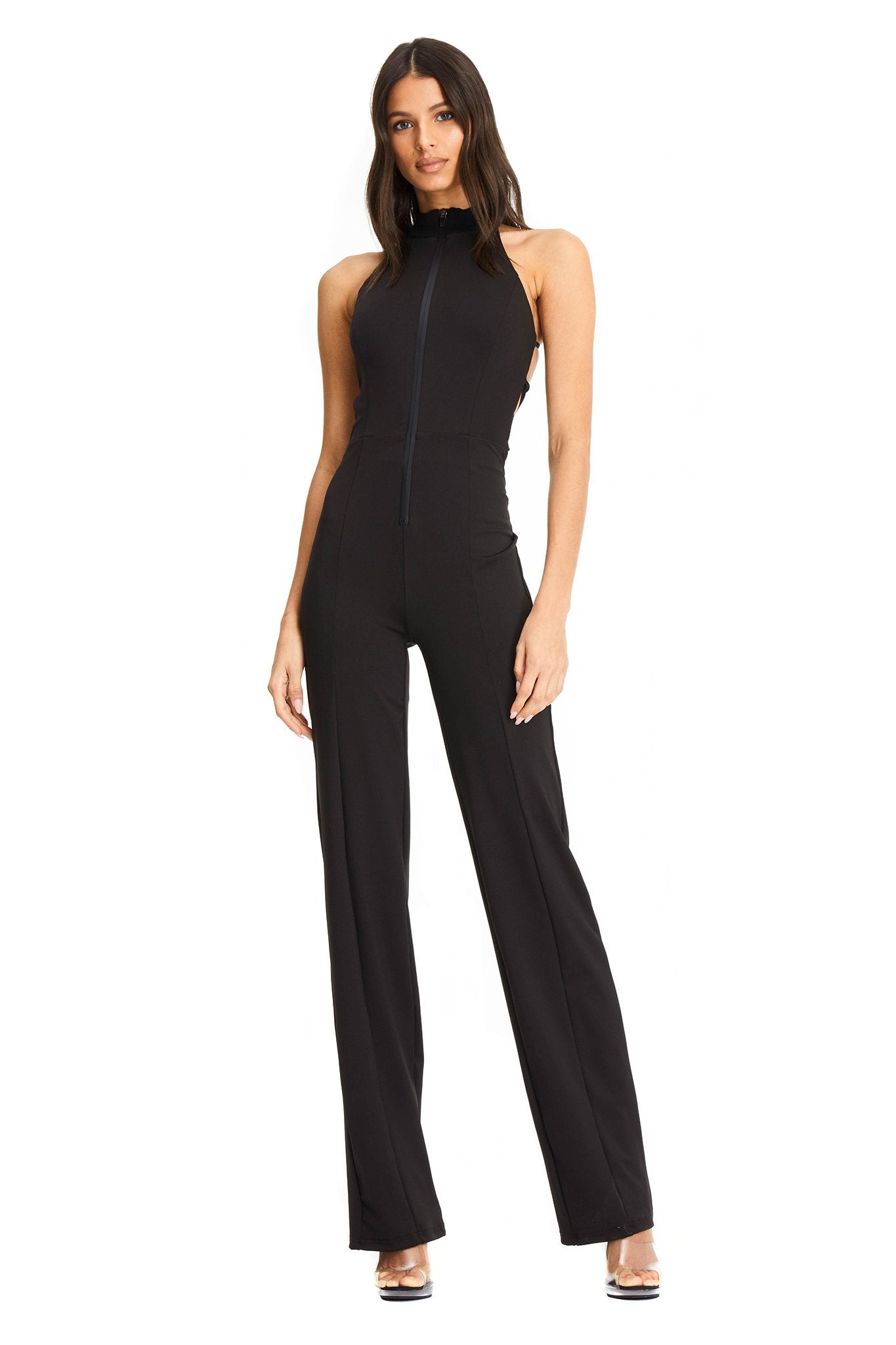 Black high neck sleeveless jumpsuit